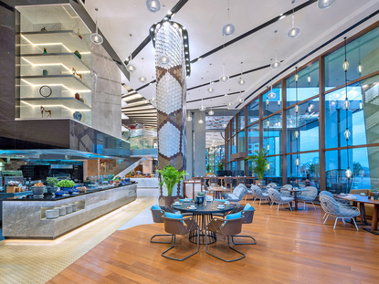 König der Wolkenkratzer ist das Burj Khalifa, mit 828 Metern das höchste Gebäude der Welt. Mit dem Aufzug können sich Städtereisende in die 125. oder in die 148. Etage bringen lassen und im Dubai-Urlaub von einer der beiden Aussichtsplattformen das wahrhaft atemberaubende Panorama betrachten. Das Gebäude steht in einer eigenen Parkanlage, zu der auch ein künstlicher See mit der "Dubai Fountain" gehört. Es handelt sich hierbei um das größte choreographierte Springbrunnensystem der Welt, dessen Fontänen wahre Tänze zu Musik und Licht aufführen. Zu Füßen des Burj Khalifa lockt die Dubai Mall Einkaufsbegeisterte zum Shopping-Erlebnis. Neben Hunderten Boutiquen und Läden gibt es hier auch ein Kino und sogar eine Eislaufhalle. Wintersport können Frühbucher in Dubai übrigens auch in der Skihalle in der "Mall of the Emirates" ausüben – und das bei Außentemperaturen, die auch im Januar nicht unter 20 Grad fallen!
