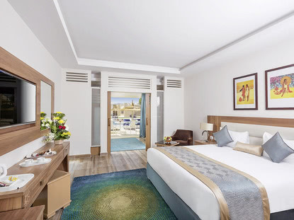 In Ägypten herrscht das ganze Jahr über perfektes Urlaubswetter. Es ist den ganzen Sommer über warm und trocken. Wenn Sie neben dem reichhaltigen Kulturprogramm auch einmal am Strand relaxen möchten, bieten sich die Hotels am Roten Meer mit ihren riesigen Badelandschaften an. In den Hotels in Ägypten, die sich entlang der Küste erstrecken, wohnen Sie unmittelbar an einem schneeweißen Strand, der flach ins kristallklare Wasser abfällt. Die faszinierende Unterwasserwelt in Hurghada und Marsa Alam lädt zum Tauchen und Schnorcheln ein. Hier wimmelt es nur so von farbenfrohen Fischen, die sich in der einzigartigen Korallenlandschaft tummeln. Vielen Hotels ist sogar ein Hausriff vorgelagert, sodass Sie ganz bequem die Unterwasserwelt beim Tauchen erkunden können. Auch andere Sportarten, wie Wasserski und Surfen, werden in vielen Strandhotels angeboten. Ein ganz besonderes Highlight ist eine Tour mit dem Glasboden-Boot. Zurück an Land erwartet Sie indes schon eine Stärkung in Ihrem Hotel, denn die luxuriösen All-Inclusive-Hotels halten schmackhafte Mahlzeiten mit internationalen als auch traditionellen Köstlichkeiten für Sie bereit. Buchen Sie noch heute besonders günstig Ihr Hotel in Ägypten mit alltours!
