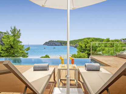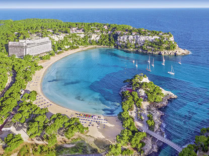 Ihr Urlaub auf Menorca gibt Ihnen die Möglichkeit, einen entspannenden Bade-Urlaub mit kulturellen Höhepunkten, zu verbinden. Bereits 6500 Jahre vor Christus wurde Menorca vom spanischen Festland aus besiedelt. Aufgrund der strategisch wichtigen Lage der Mittelmeerinsel wurde Menorca im Laufe der Jahrhunderte von zahlreichen Weltreichen, wie den Griechen, den Römern, den Franzosen und den Spaniern besetzt. Die historischen Spuren der Besetzer können Sie noch heute während Ihrer Pauschalreise entdecken. Die Necropolis de la Morell ist eine historische Grabstätte mit beeindruckenden Höhlengräbern. Das entspannte Flair Spaniens erleben Sie hautnah in den malerischen kleinen Fischerdörfern mit ihren weißen Häusern, die es während Ihrer Ferien zu besuchen lohnt. Hier können Sie sich von der Küche Menorcas, die einfacher und deftiger als die von Mallorca ist, verwöhnen lassen. Zu frisch zubereiteten Salaten und Fischgerichten wird auf Menorca die traditionelle, „Salsa Mahonesa“ gereicht, die eine besondere Form der Mayonnaise ist. Die schönsten Strände der Balearen-Insel sind der flach abfallende Cala en Turqueta, dessen Namen von seinem türkisblauen Wasser kommt, und der halbmondförmige Strand von Arenal d'en Castell. Er wird von mächtigen Felsen umgrenzt. In Ihrem Urlaub auf Menorca sollte auch ein Besuch des 357 Meter hohen Monte Toro nicht fehlen. Von ihm genießen Sie bei klarer Sicht einen atemberaubenden Blick über die ganze Insel. Erleben Sie einen idyllischen Aufenthalt in schöner Natur und buchen Sie mit alltours sicher und unkompliziert Ihren Urlaub auf Menora!